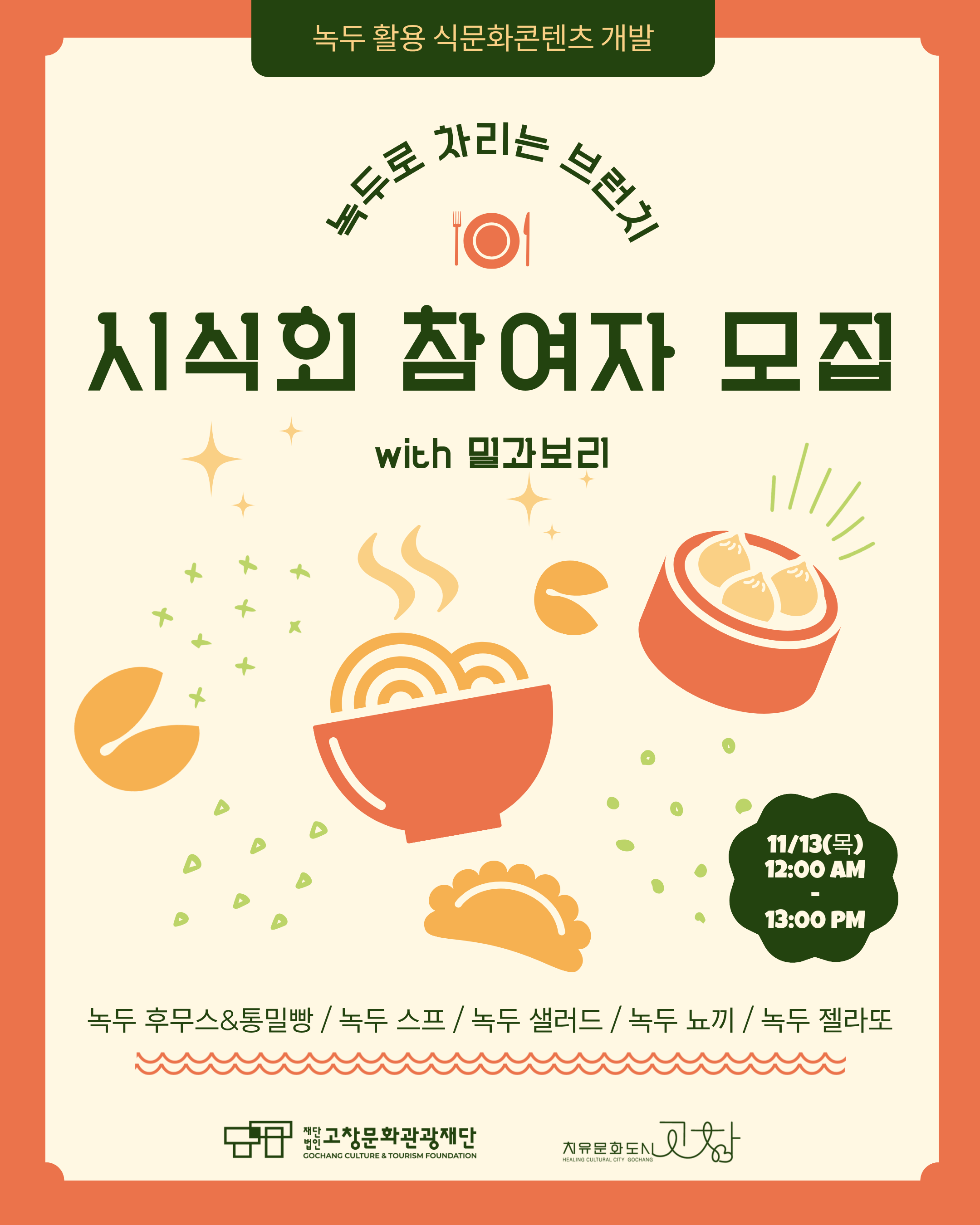 녹두 식문화콘텐츠 <녹두로 차리는 브런치> 시식회 참여자 모집