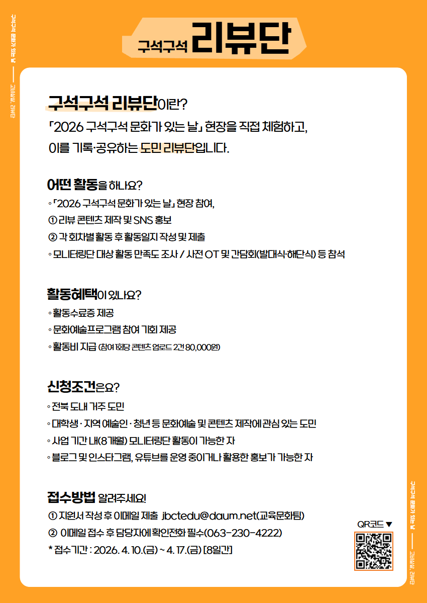 2026 구석구석 문화가 있는 날 모니터링단 <구석구석 리뷰단> 모집