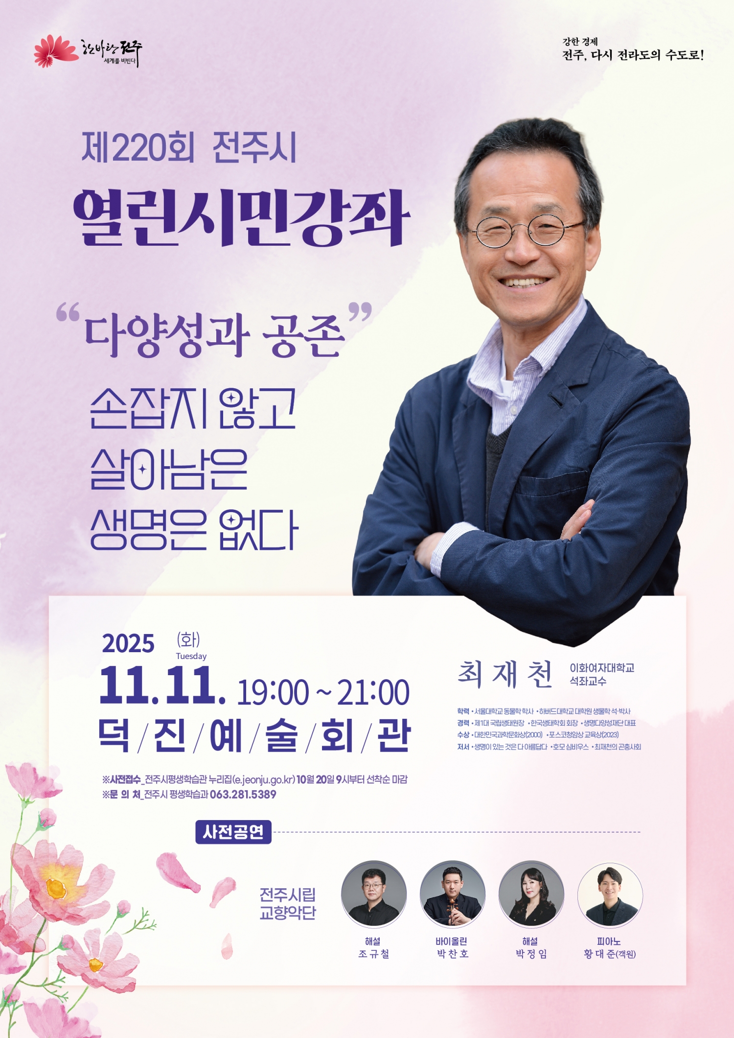 전주시는 시민 여러분의 지적 성장을 돕고, 삶의 통찰을 나누기 위한 열린시민강좌를 아래와 같이 개최합니다.