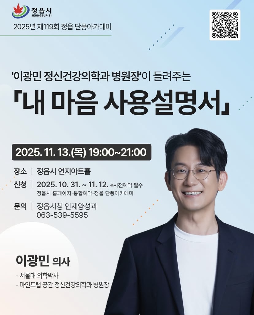 제119회 정읍 단풍아카데미 안내(강연자 : 서울대 의학박사 이광민)