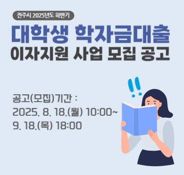 전주시 2025년도 하반기 대학생 학자금대출 이자지원 사업 모집 공고