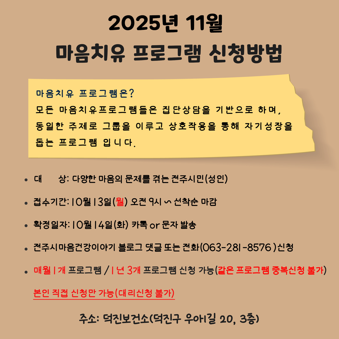전주시보건소 11월 마음치유 프로그램 신청 안내