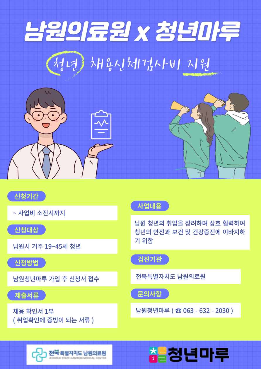 [남원의료원X남원청년마루 청년 채용신체검사비 지원]
