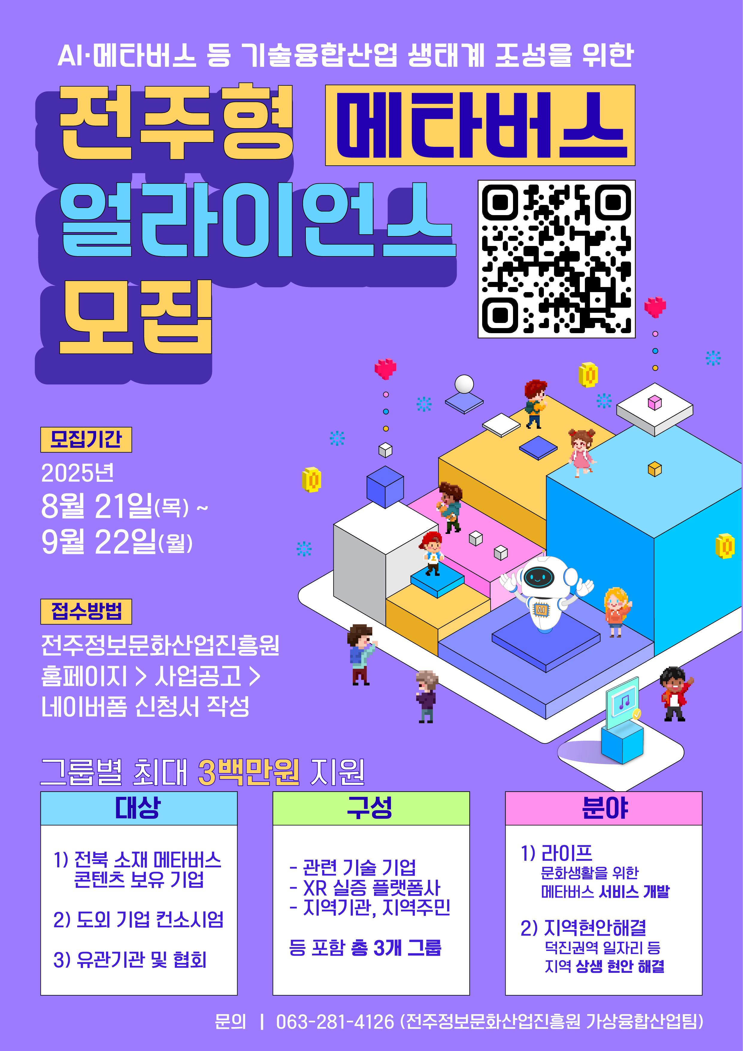 첨단디지털 문화콘텐츠 육성공간 지원을 위한 전주형 메타버스 얼라이언스 모집 공고
