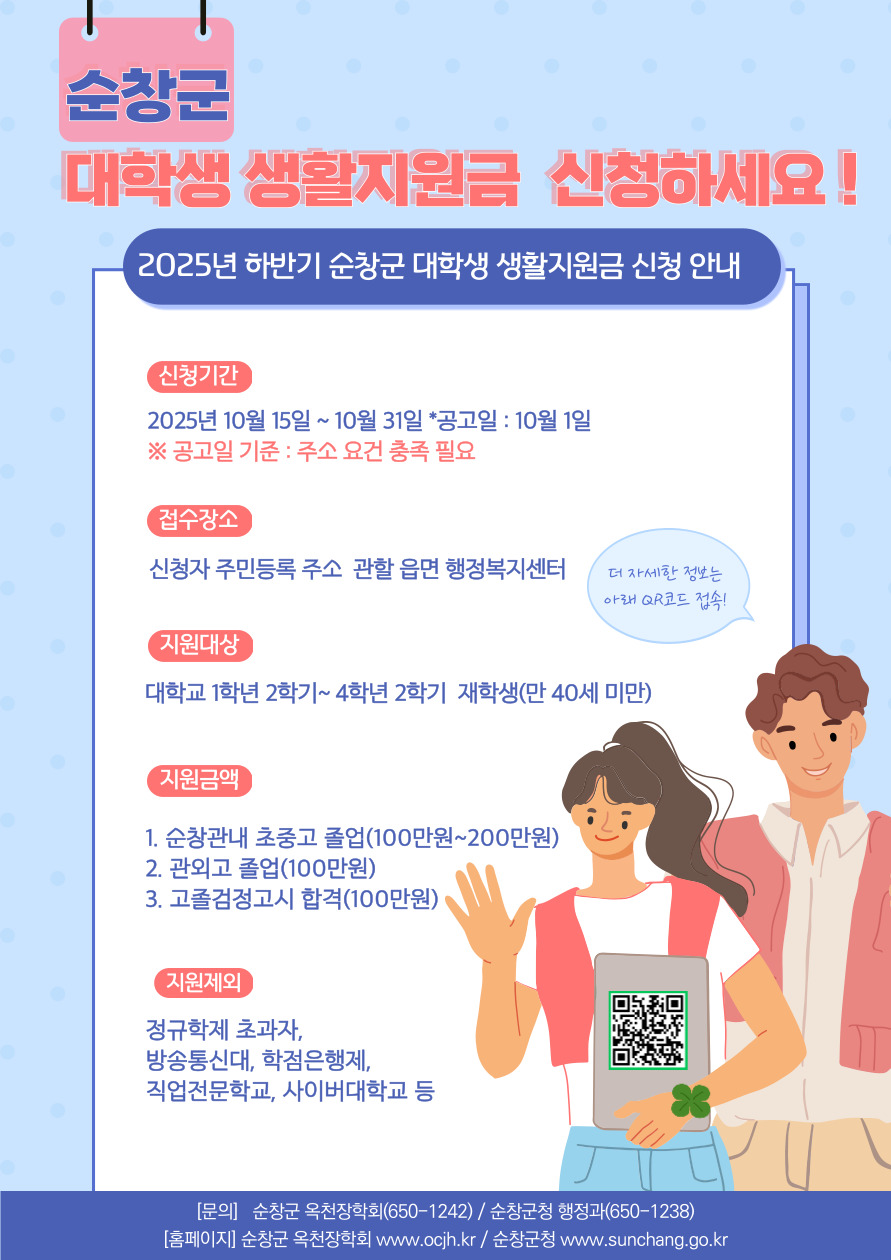 - 순창군 출신 대학교 재학생(만 40세 미만)