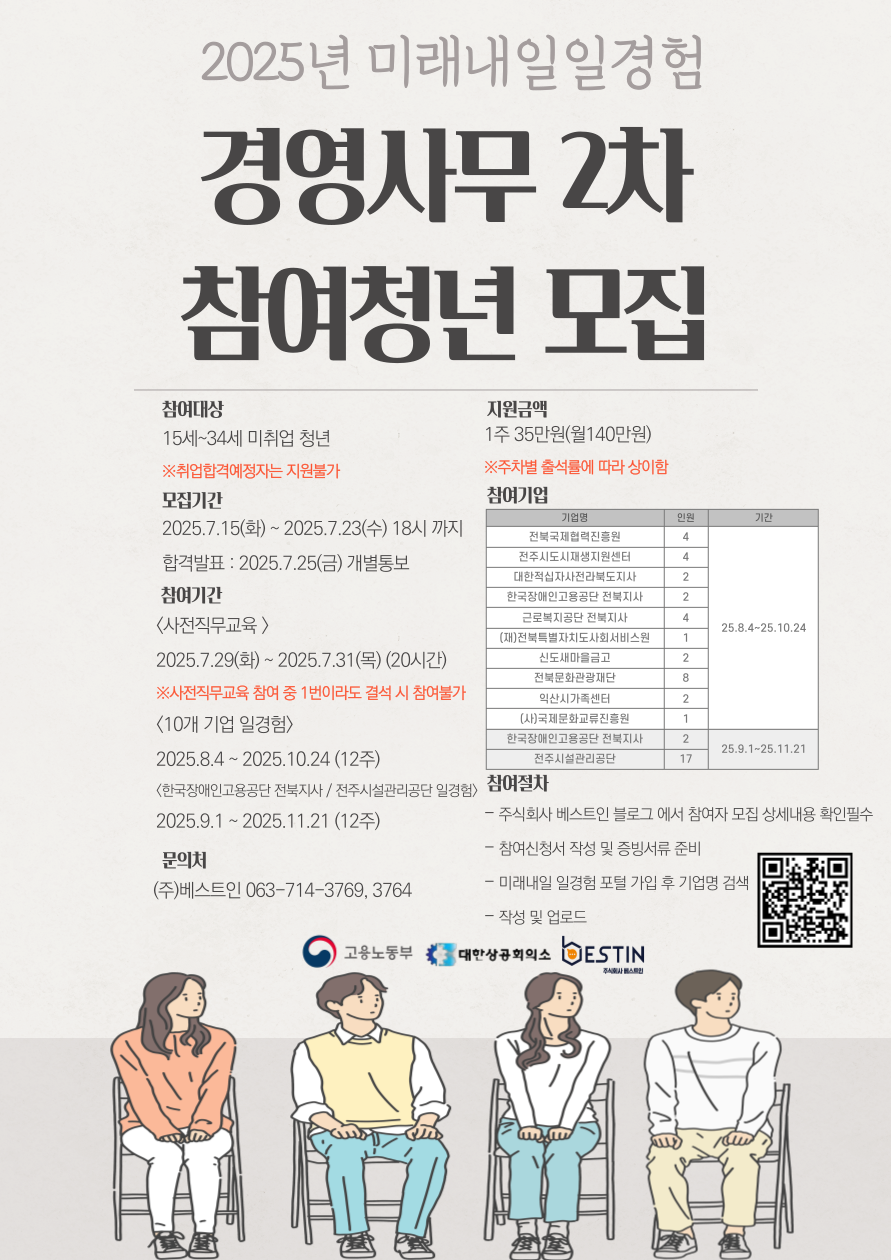 2025년 미래내일일경험 경영사무 2차 참여청년 모집