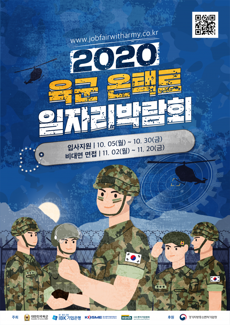 - 2020 육군 온택트 일자리박람회(www.jobfairwitharmy.co.kr)에서 신청, 10월 5일 오픈